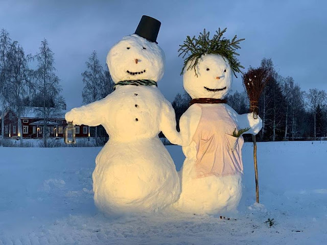 (Kuvassa ovat mummo ja pappa, jotka me lapset ja lastenlapset mummulan portinpieleen teimme jouluna).